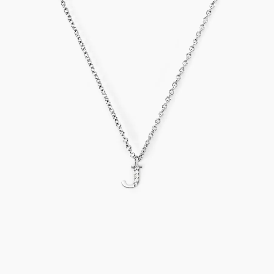 Collier Argent Blanc 925/1000 Lettre J Semi Pavage Oxydes De Zirconium Maille Forçat 38+3cm