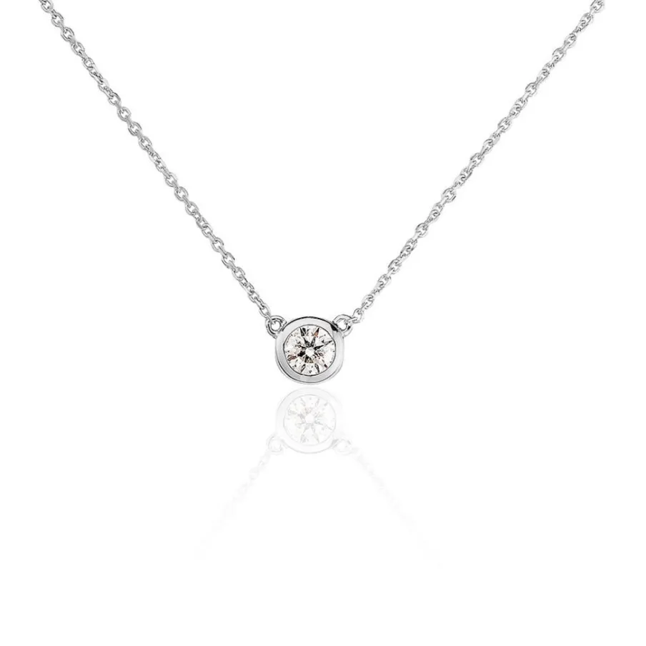 Collier Solitaire Or Blanc 375/1000 Diamants 0.20cts Serti Clos 42cm