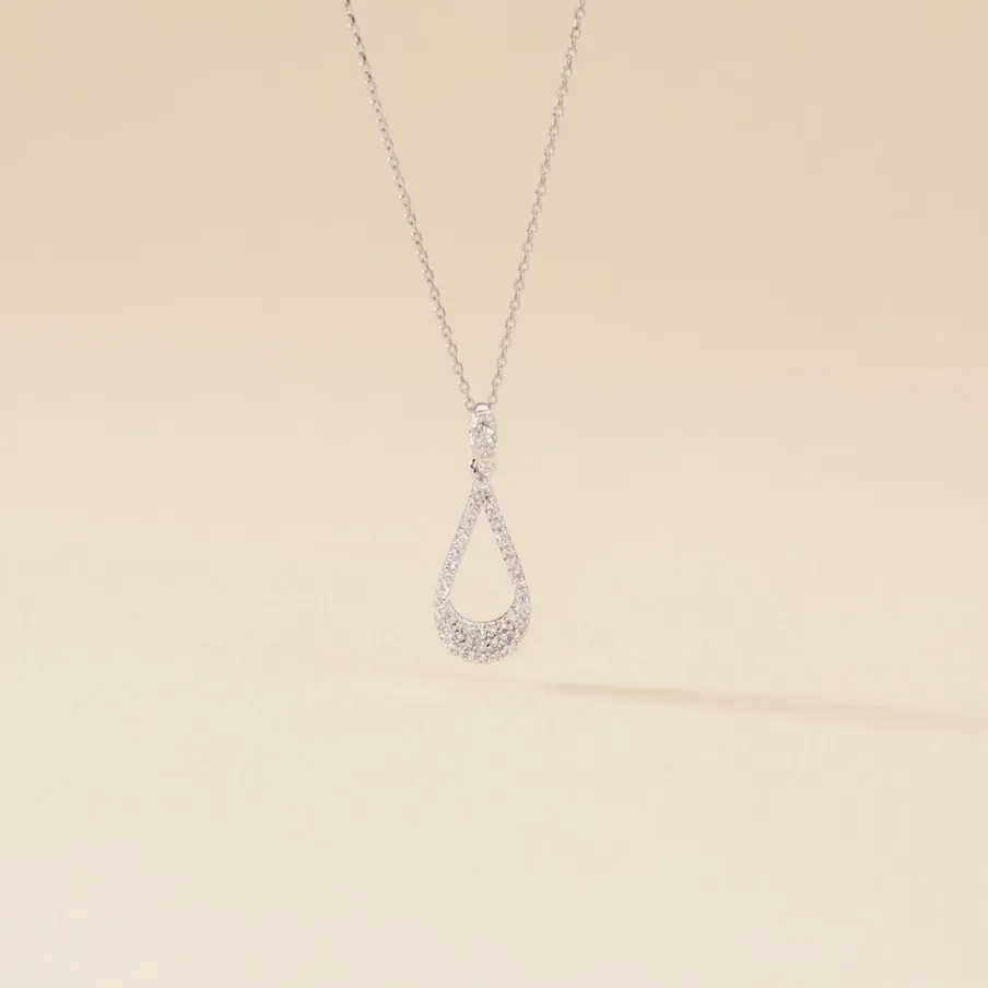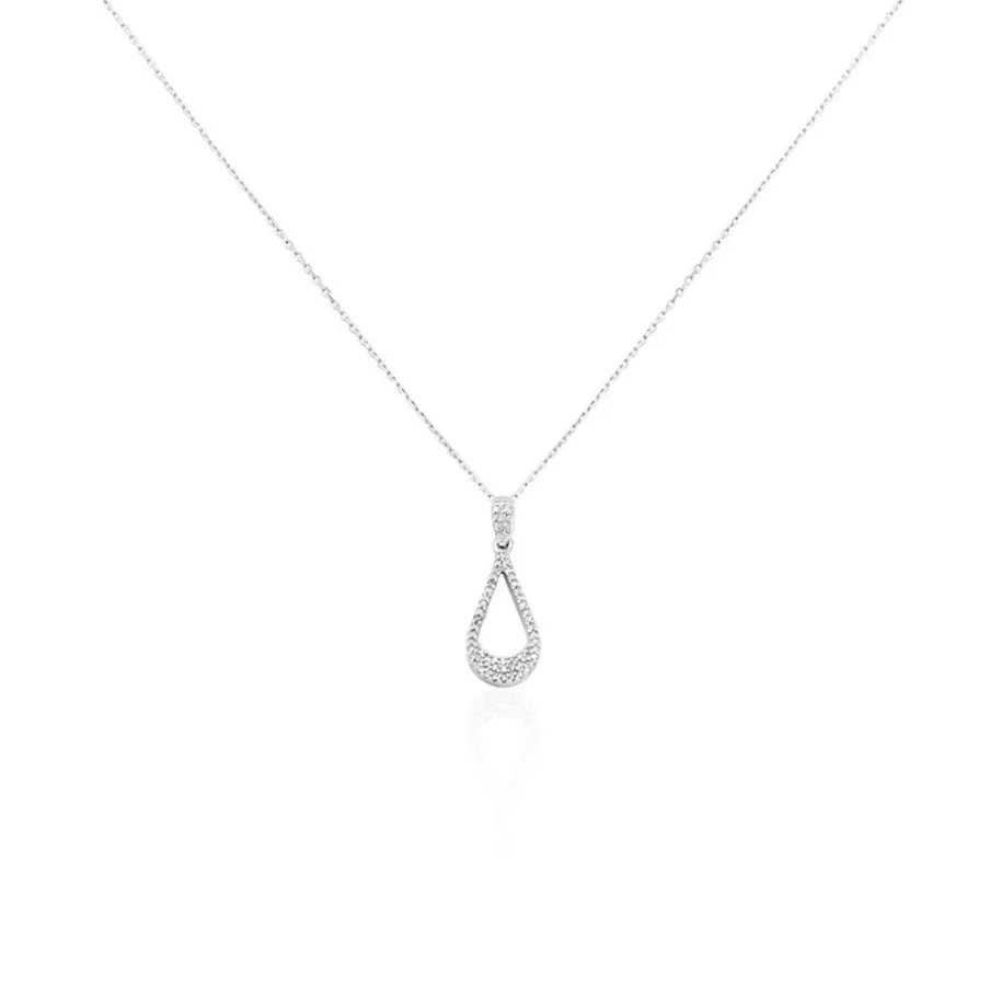 Collier Or Blanc 375/1000 Forme Goutte Diamants Maille Forçat 40+2cm