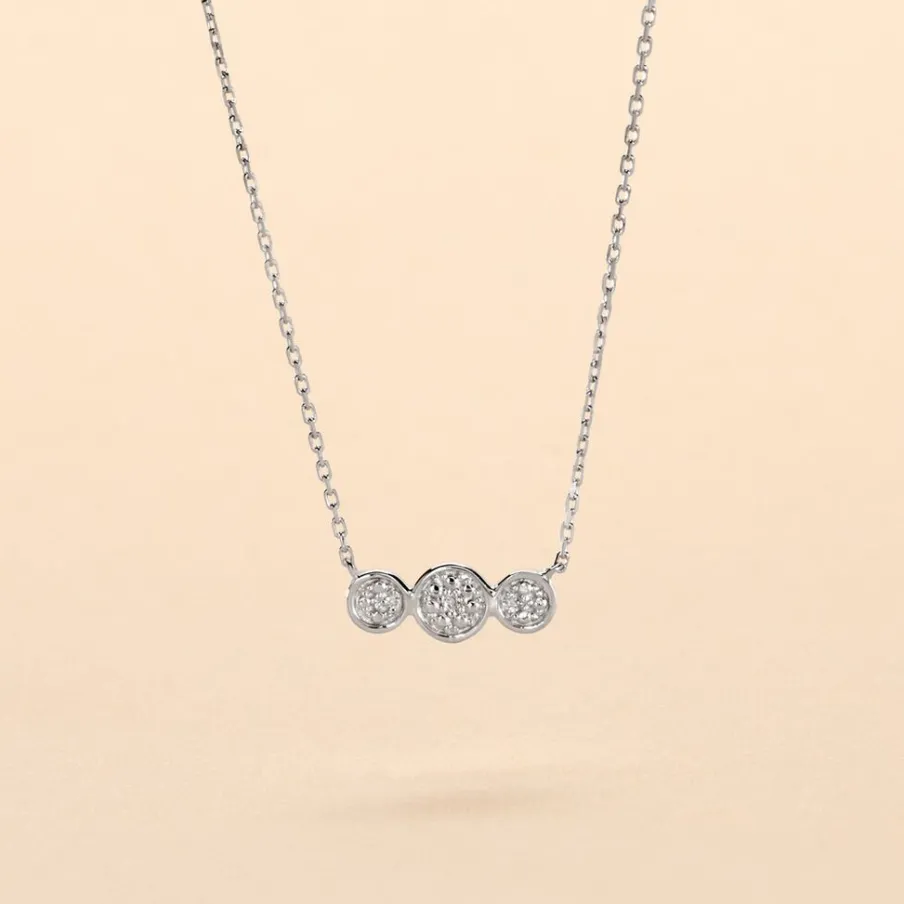 Collier Or Blanc 375/1000 3 Ronds Pavage Diamants Maille Forçat 40+2cm
