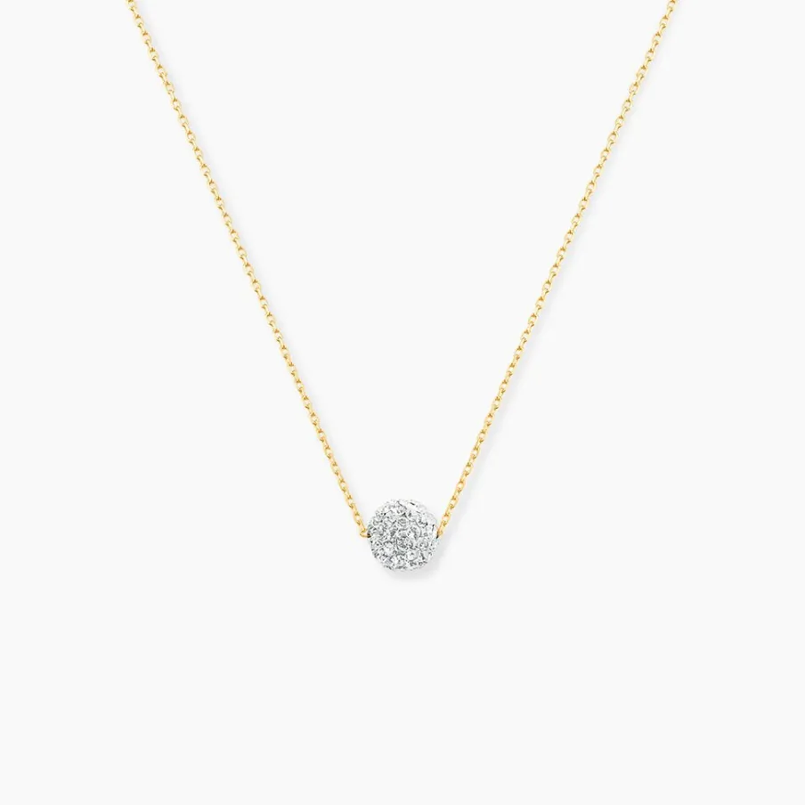 Collier Or Jaune 375/1000 Boule Cristal 7mm Maille Forcat 42+3cm