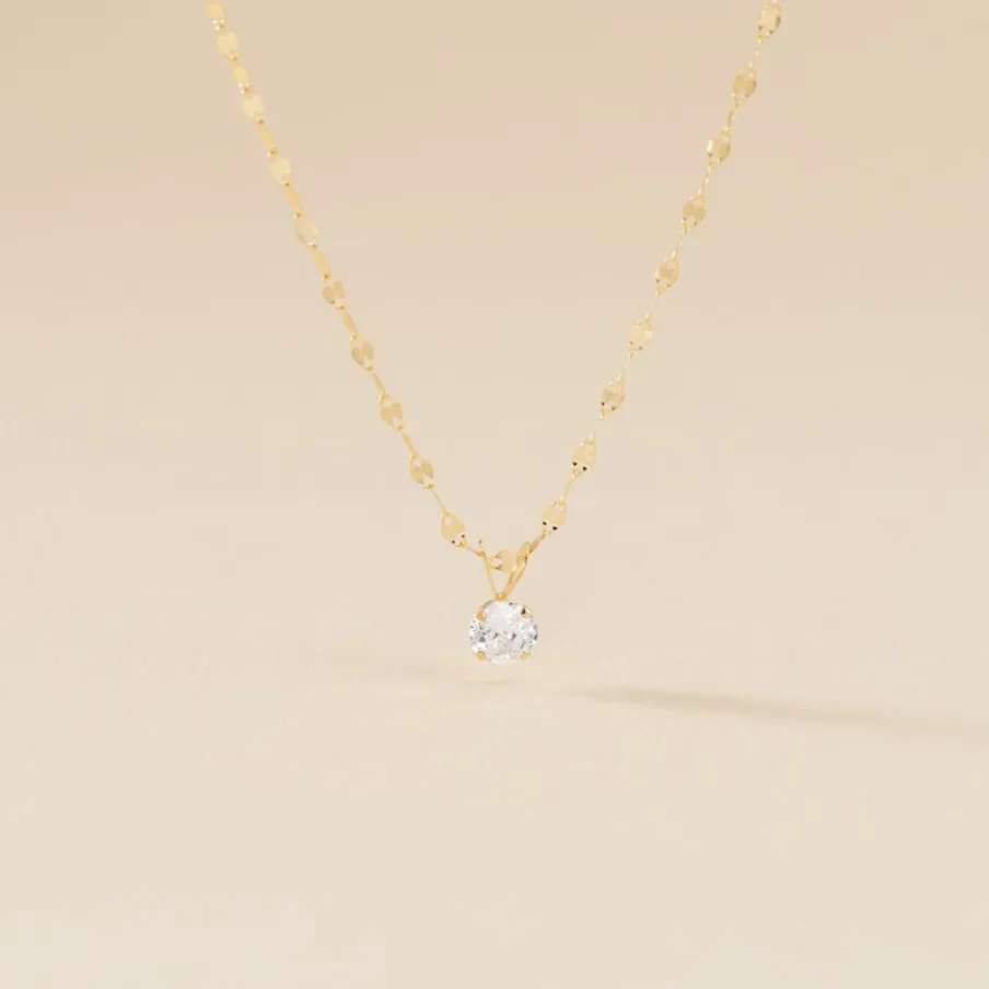 Collier Or Jaune 375/1000 Oxyde De Zirconium Serti Griffes Maille Lumina 42cm
