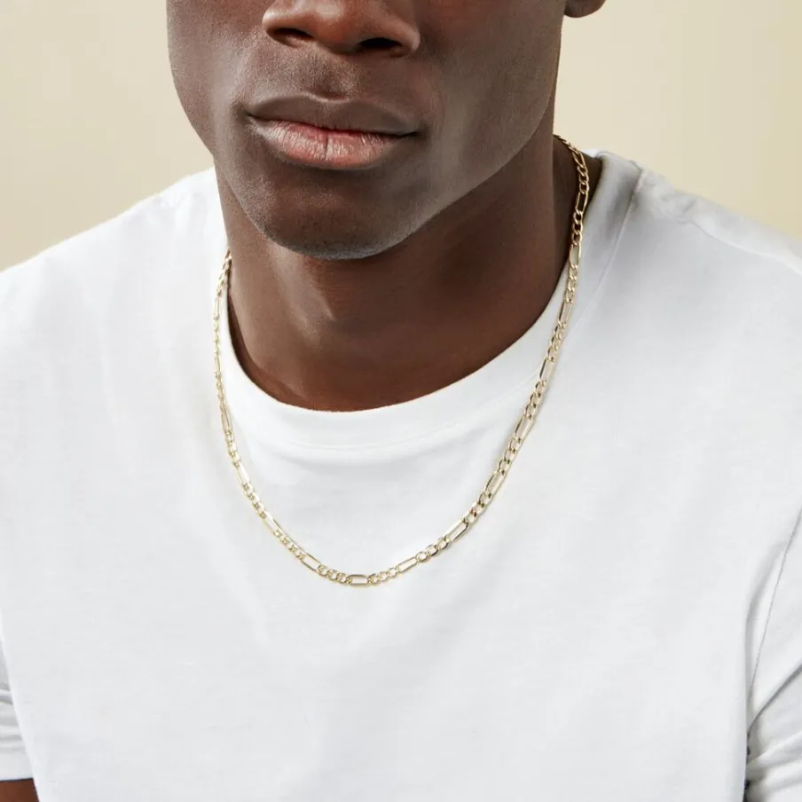 Collier Or Jaune 375/1000 Maille Alternée 1/3 Largeur 4.4mm 45cm