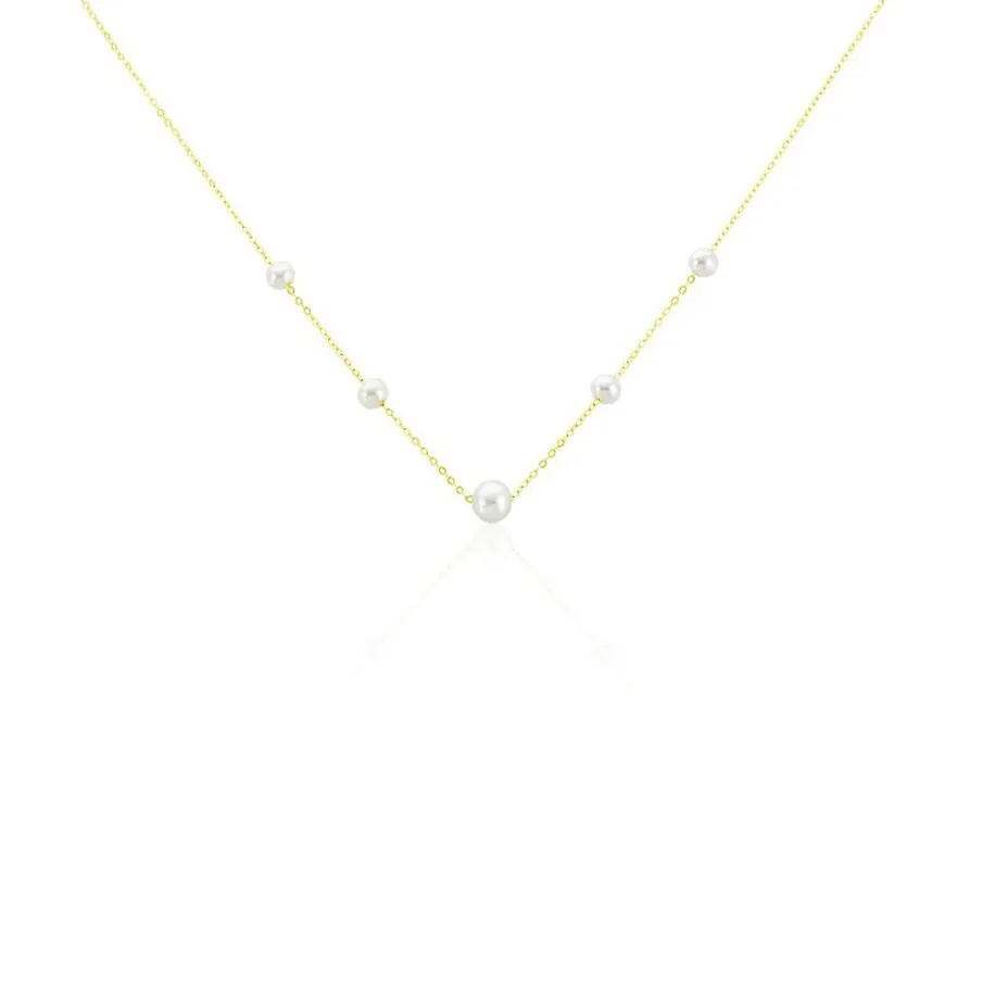 Collier Or Jaune 375/1000 5 Perles De Culture 4-5.5cm Percée Maille Forçat 42cm