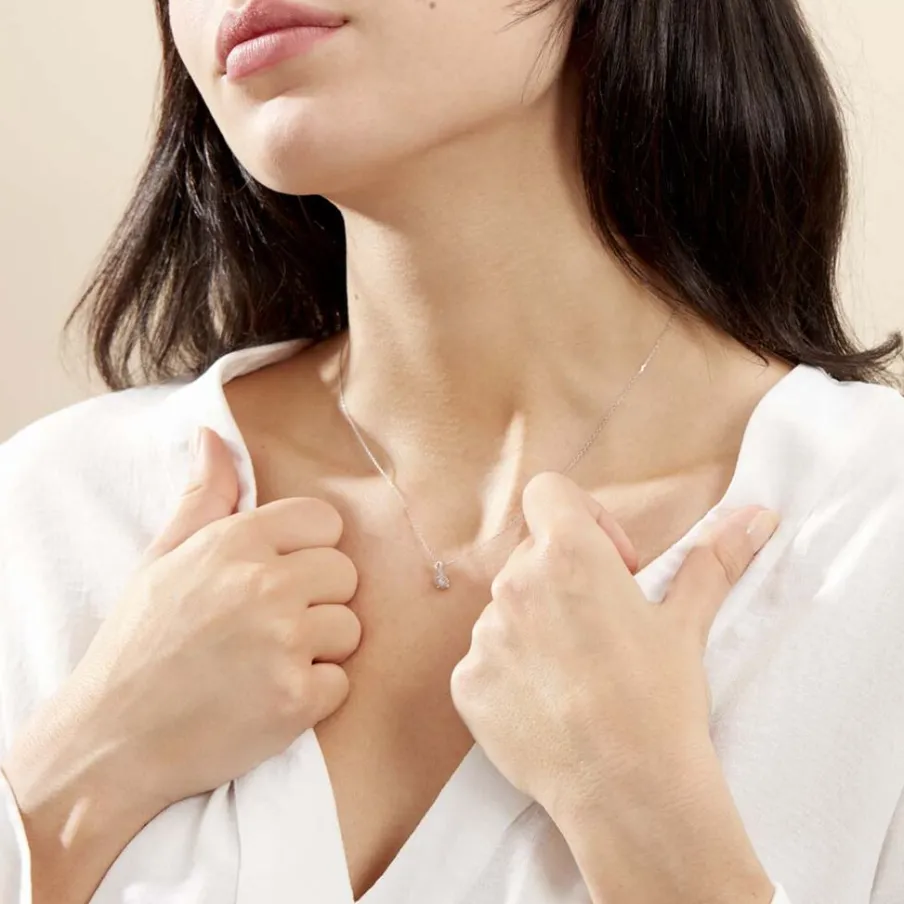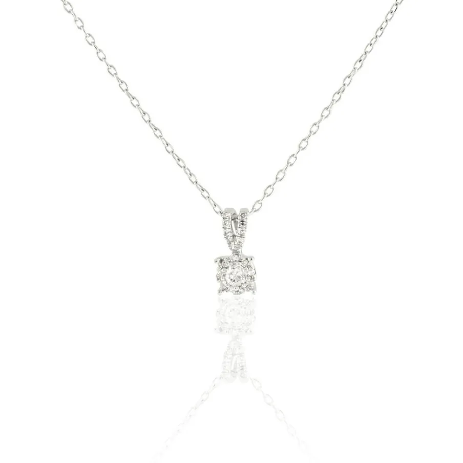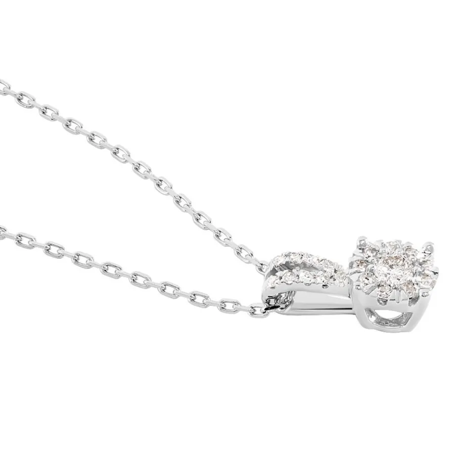 Collier Or Blanc 375/1000 Bélière Double Pavage Diamants Et Diamant Central Orphee