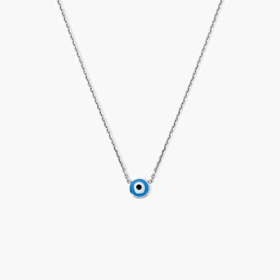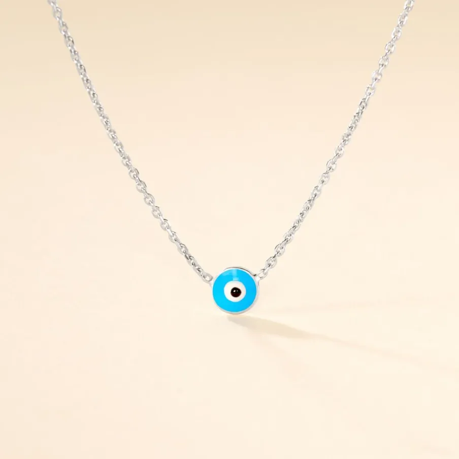 Collier Argent Blanc 925/1000 艙il Grec Email Bleu Maille Forcat 42+3cm