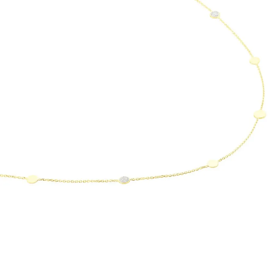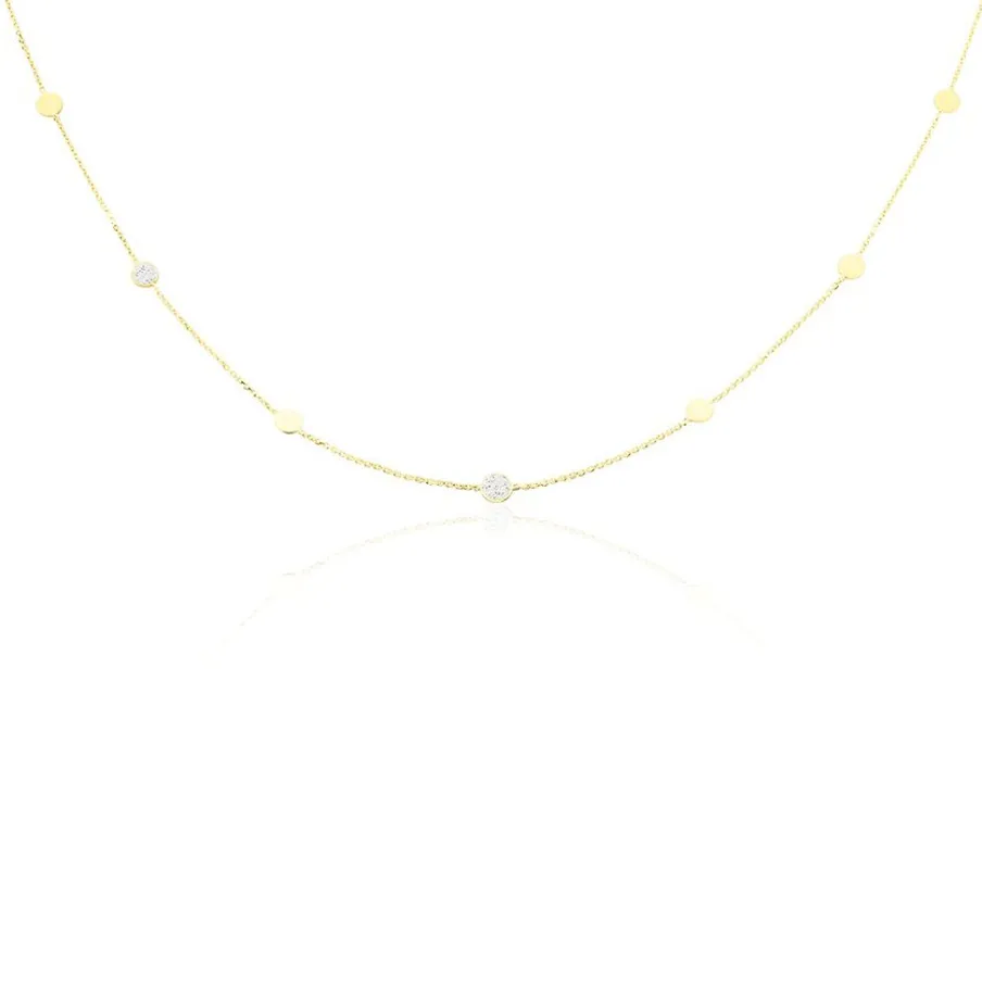 Collier Or Jaune 375/1000 Pastilles Glitter Argentees Maille Jaseron 40+2cm