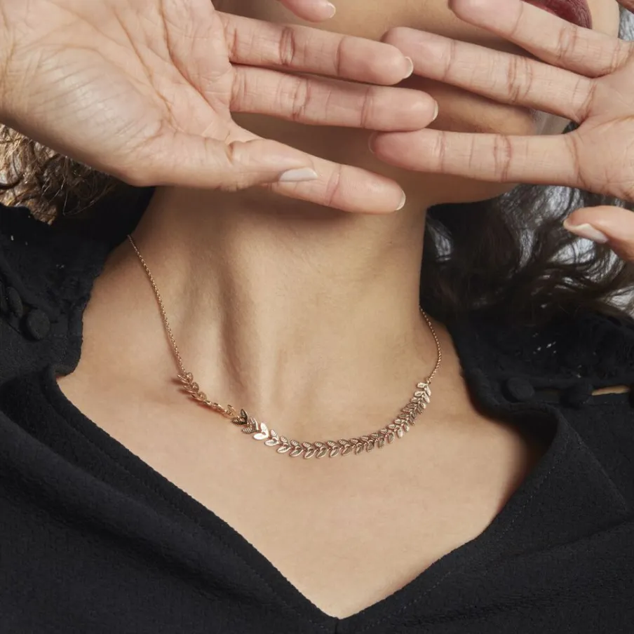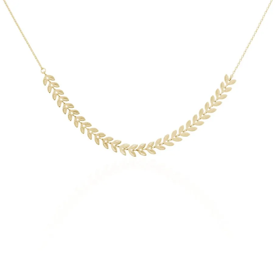 Collier Plaque Or Jaune Motifs Feuilles 42cm