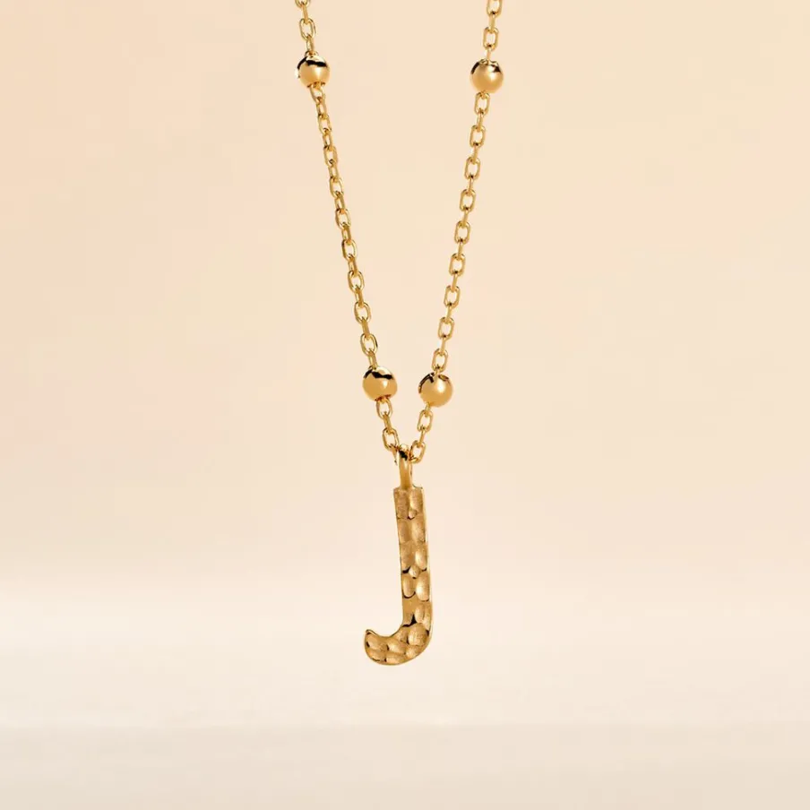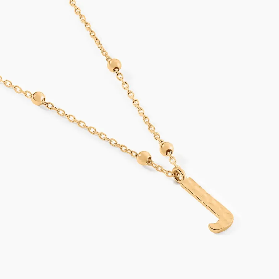 Collier Plaque Or Jaune Lettre J Martelee Et Petites Boules Chaine Maille Forcat Longueur 45cm