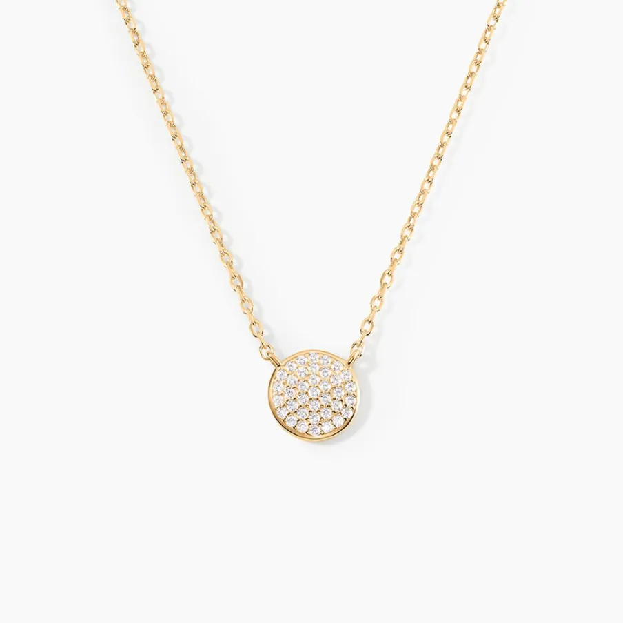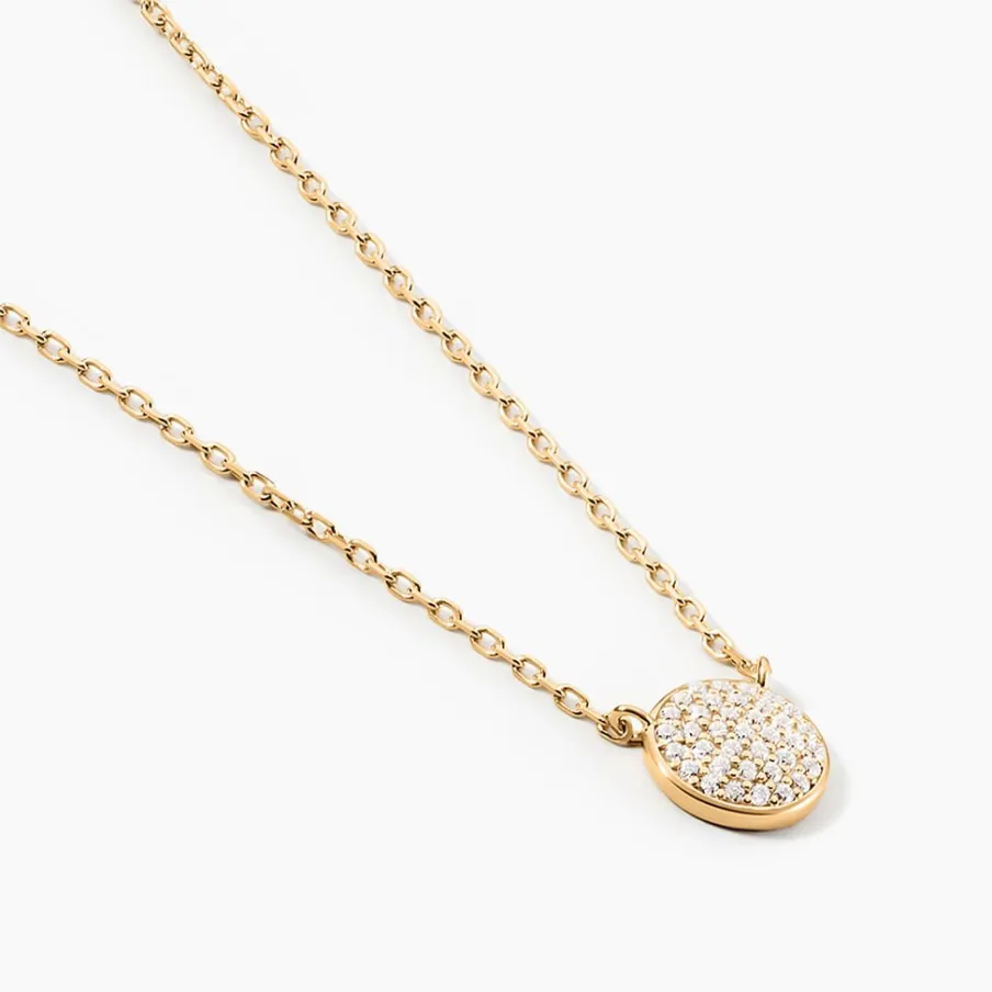 Collier Plaqué Or Jaune Rond Pavage Oxydes De Zirconium Maille Forcat 44cm