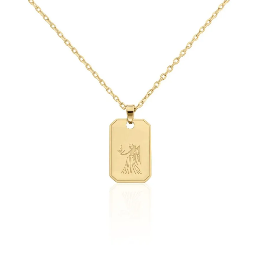 Collier Plaqué Or Jaune Plaque Gravee Signe Astrologique Vierge Maille Forcat 50cm