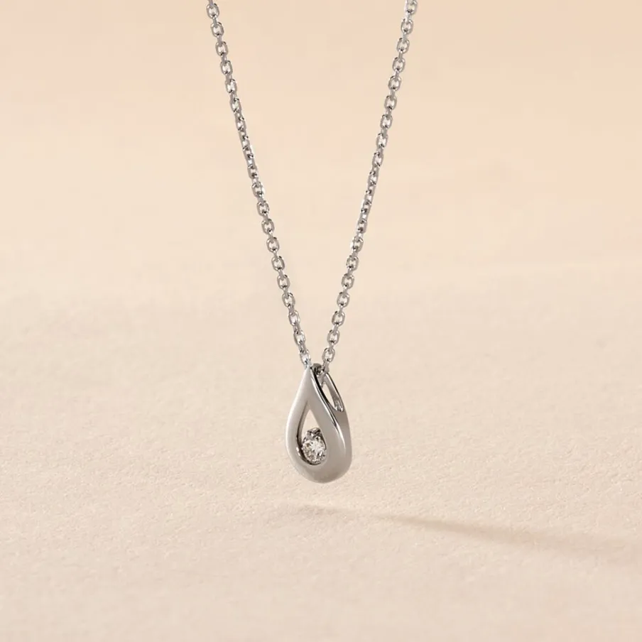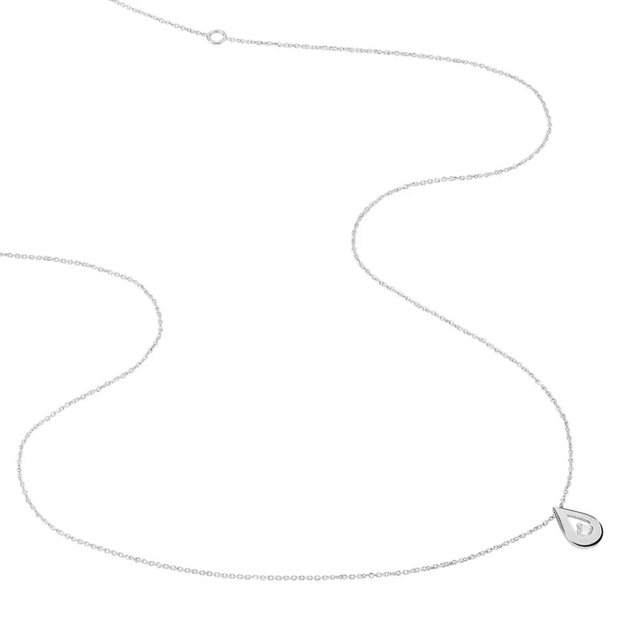 Collier Or Blanc 375/1000 Pureté Goutte Diamant 42cm