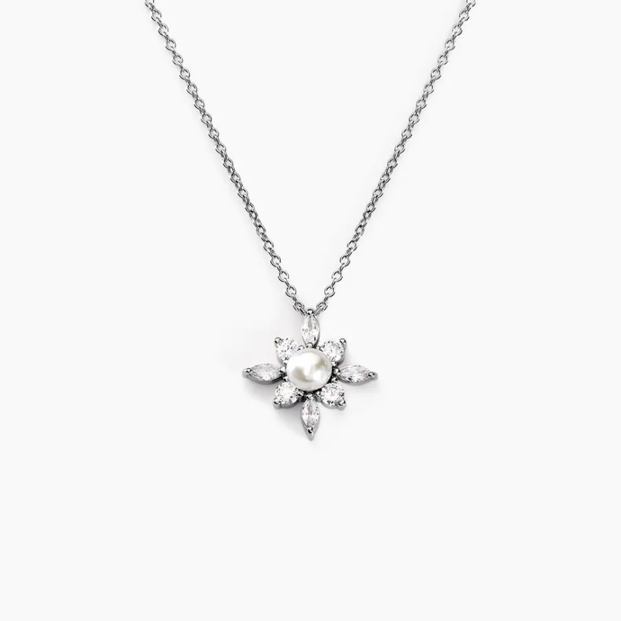 Collier Argent Blanc 925/1000 Flocon Perle De Culture Et Oxydes De Zirconium Maille Forçat 42+3cm