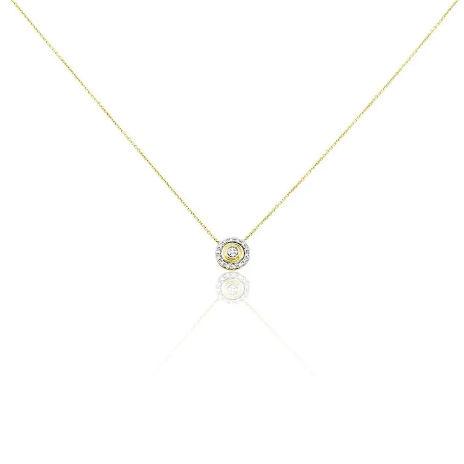 Collier Or Bicolore 375/1000 Entourage Diamants 40+2cm