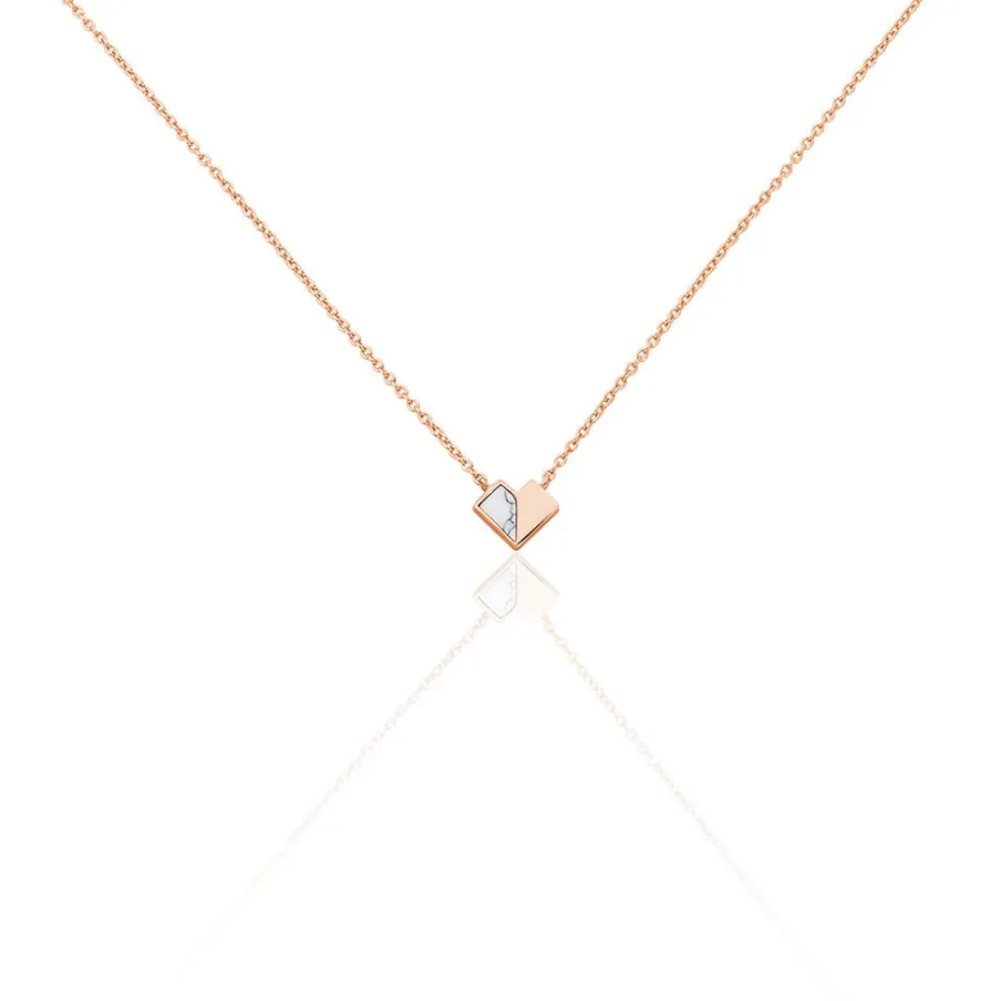 Collier Argent Rose 925/1000 Motif C艙ur Geometrique Turquoise Blanche 38cm