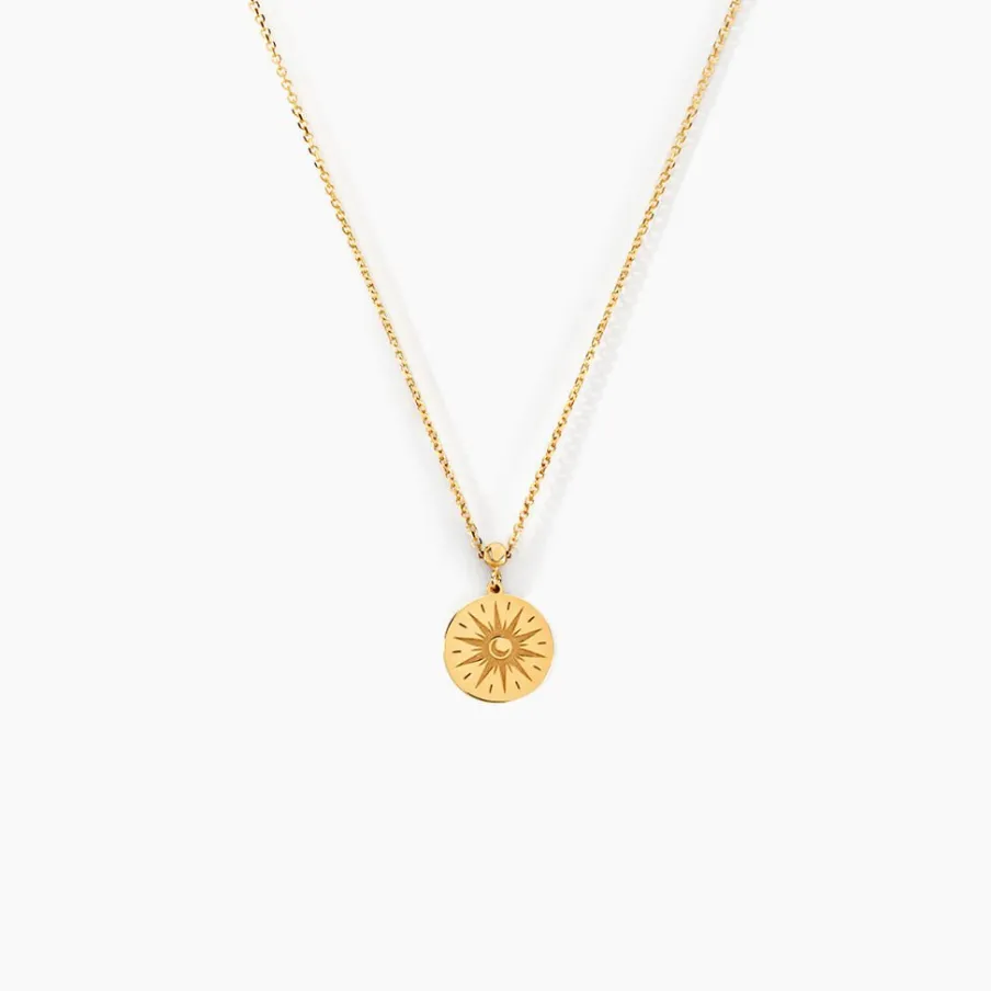 Collier Or Aune 375/1000 Pastille Soleil Et Lune Maille Jaseron 40+2cm