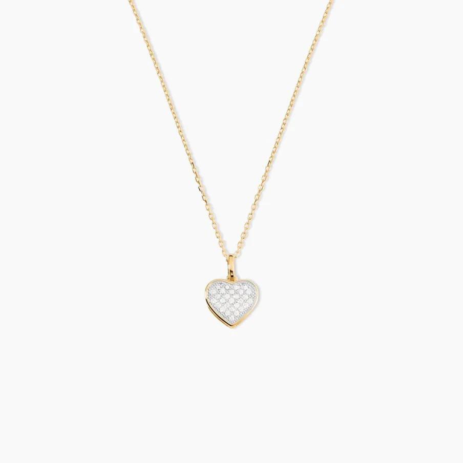Collier Or Jaune 375/1000 C艙ur Oxydes De Zirconium 42cm