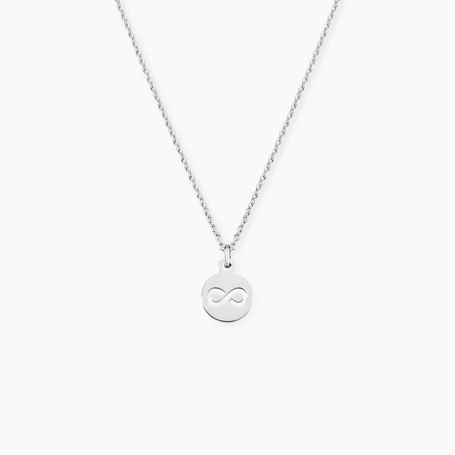 Collier Argent Blanc 925/1000 Pastille Motif Infini Ajoure Maille Forcat 42cm
