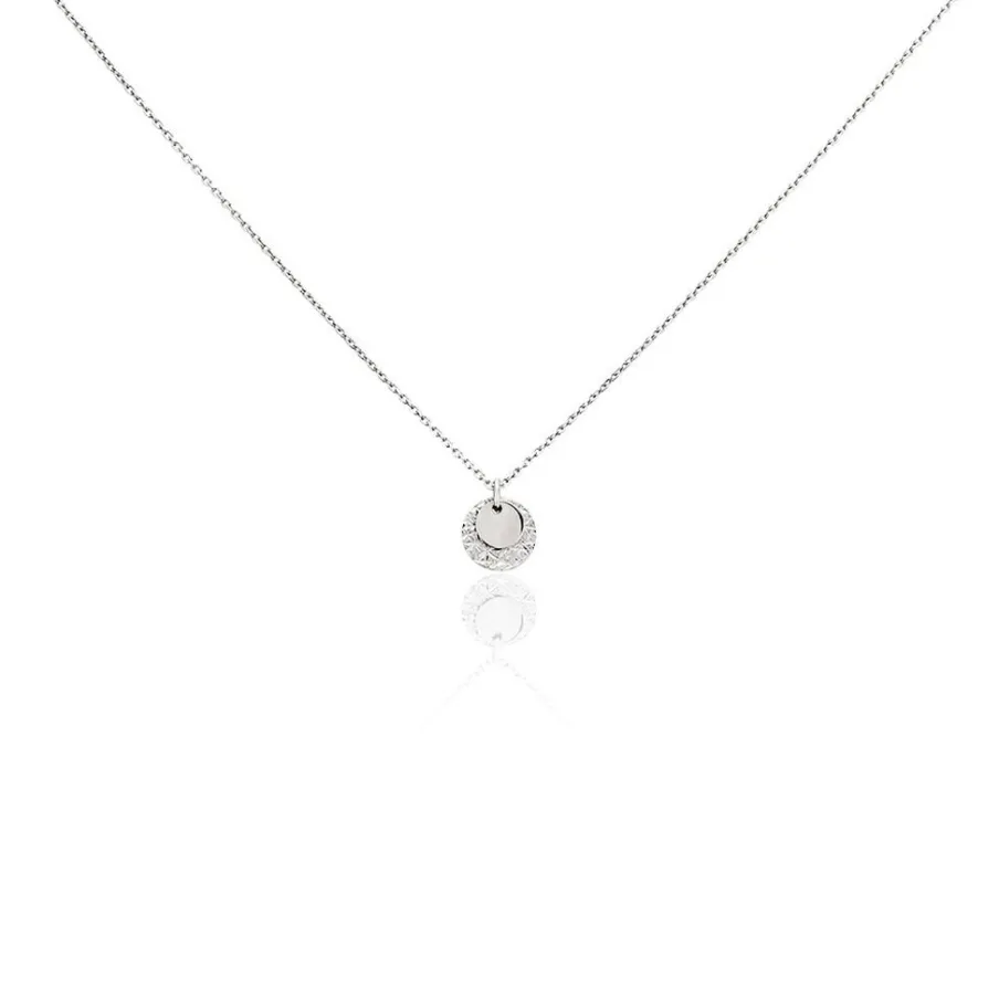 Collier Argent Blanc 925/1000 Pastille Effet Diamanté Maille Forcat 45cm