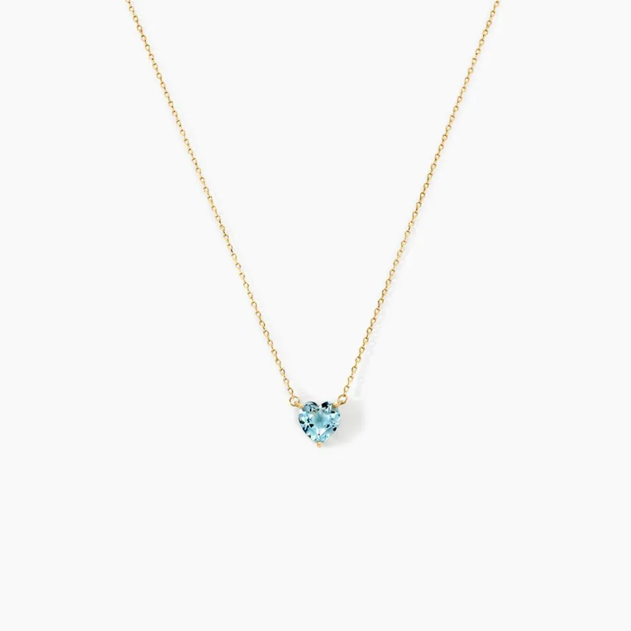 Collier Or Jaune 375/1000 C艙ur Topaze 0.9cts Serti Griffes Chaine Maille Forcat 40+2cm