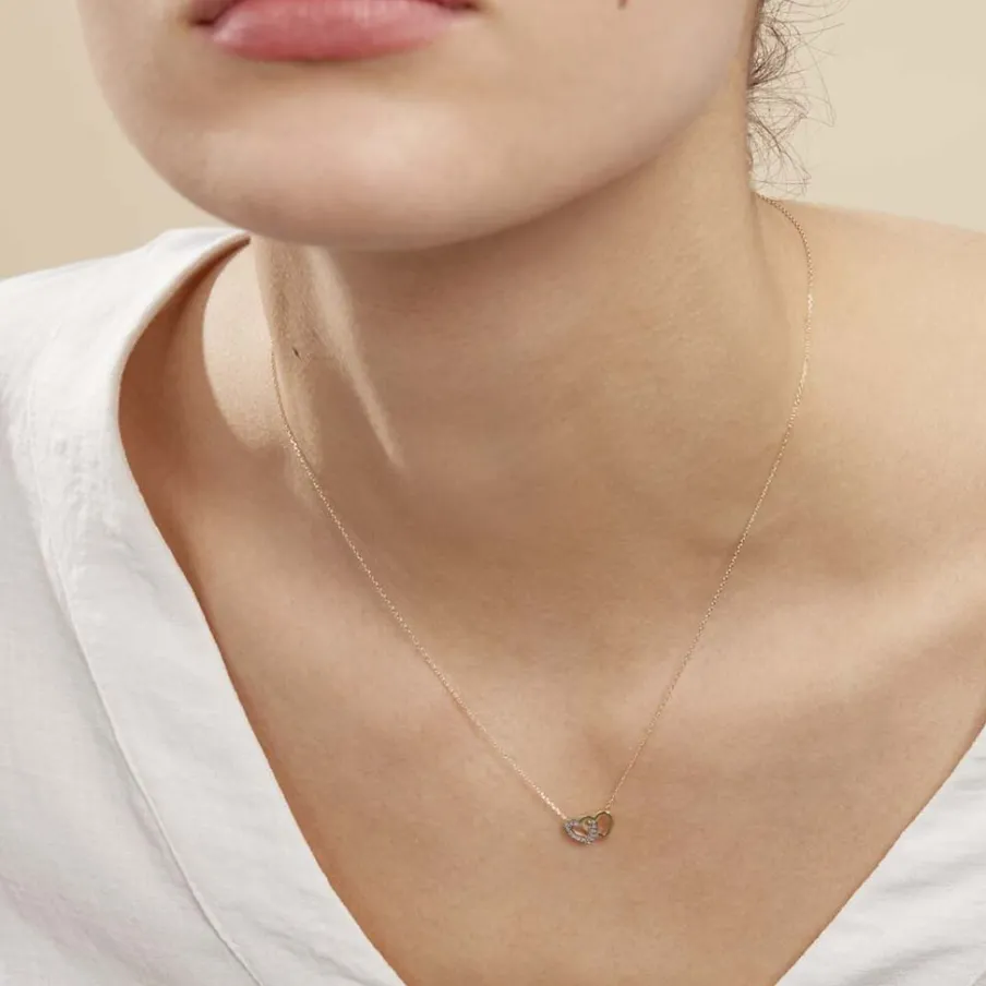 Collier Or Jaune 375/1000 C艙ur Double Pavage Diamants 42cm