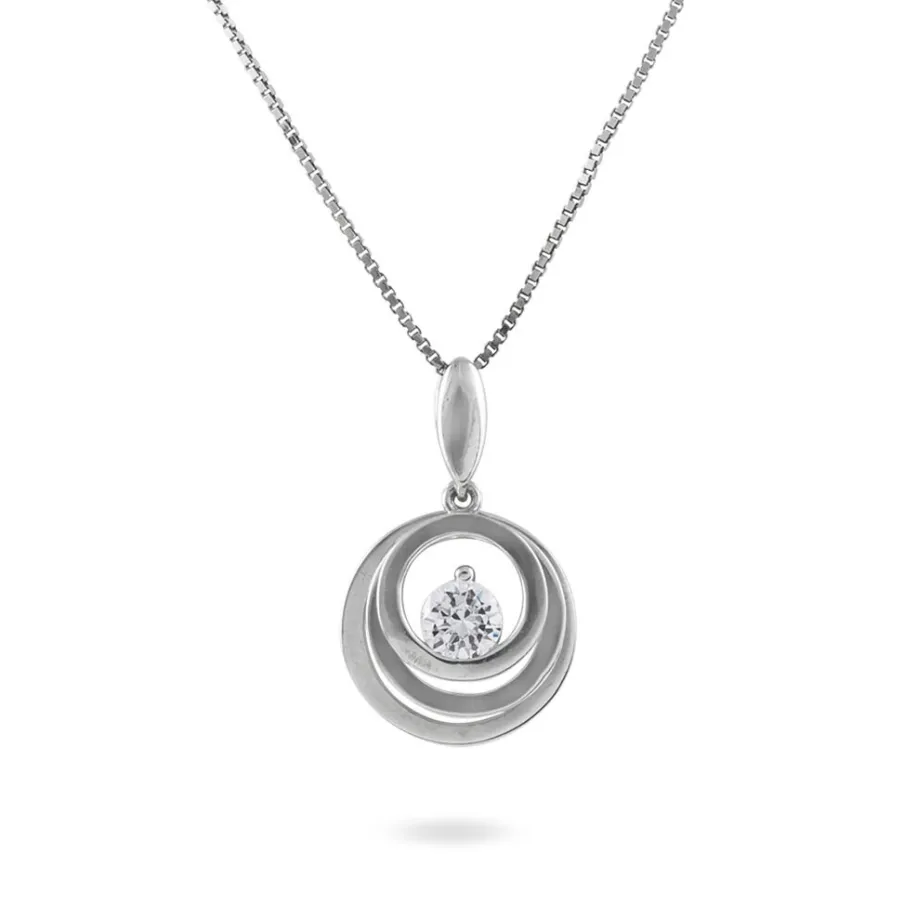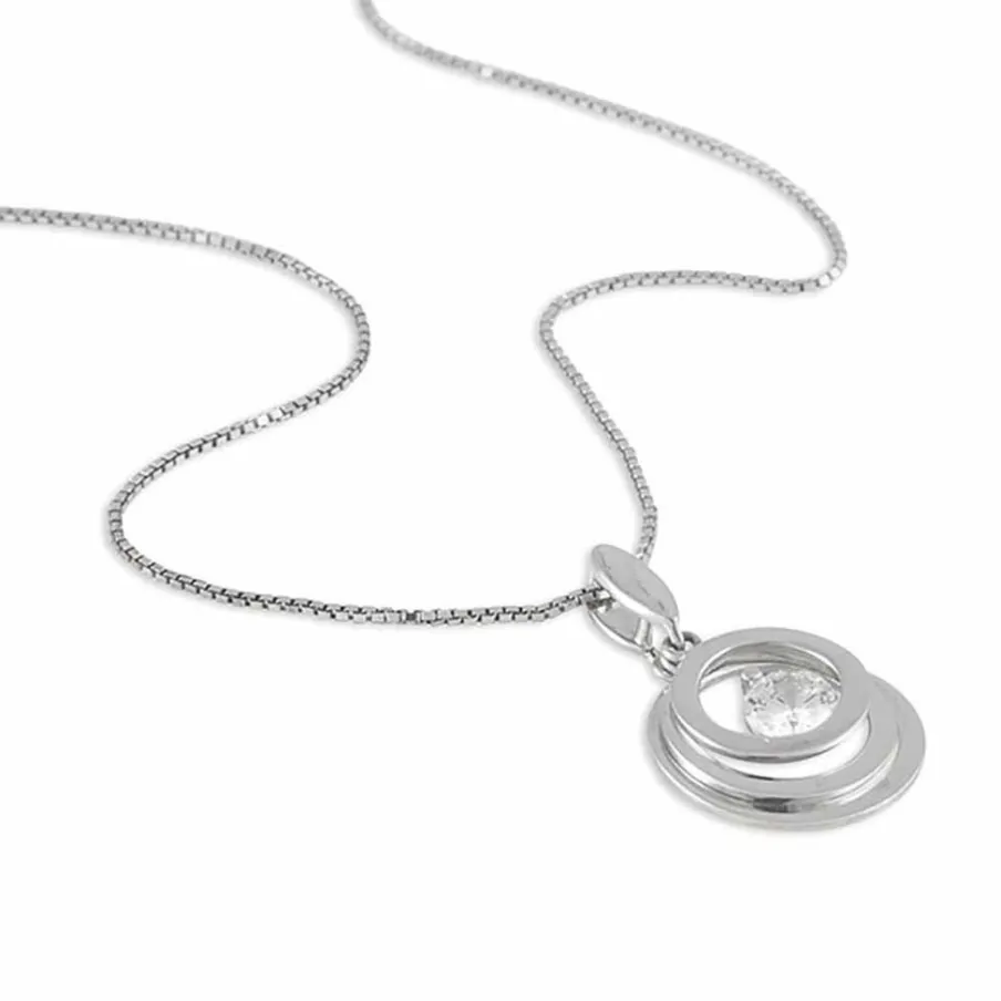 Collier Argent 925/1000 yoheved Pendentif Fantaisie 3 Cercles Et Oxyde De Zirconium Maille Forcat 42cm