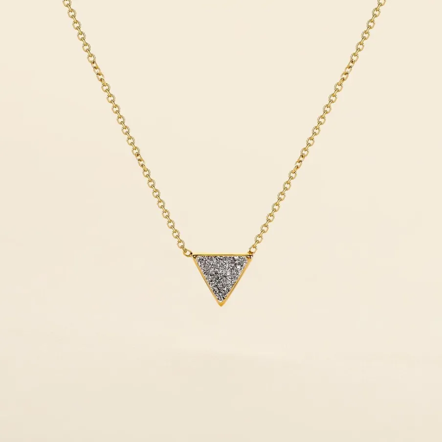Collier Or Jaune 375/1000 Triangle Glitter Argente Maille Jaseron 40+2cm