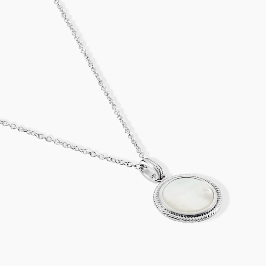 Collier Argent Blanc 925/1000 Pastille Nacre Blanche Maille Forcat 42+3cm