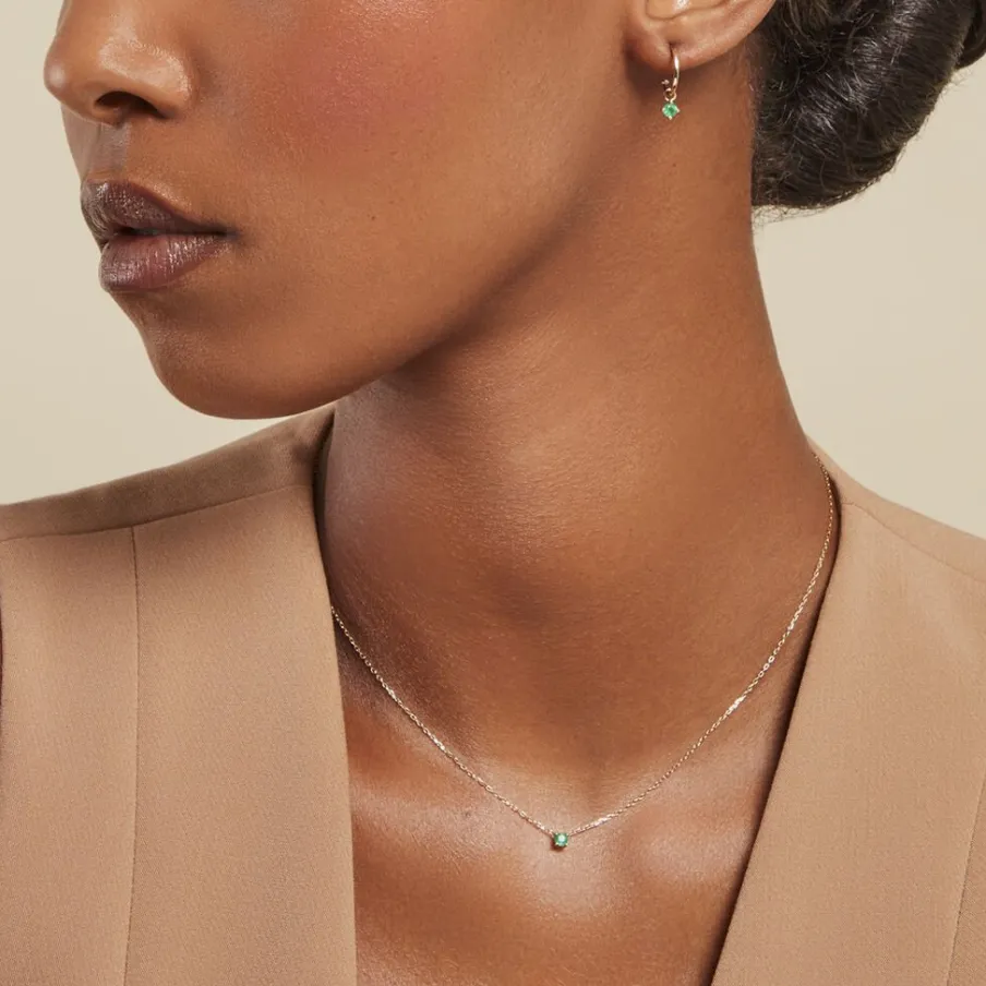 Creoles 3/4 Or Jaune 375/1000 1 Emeraude Ronde 0.10cts Serti Griffes