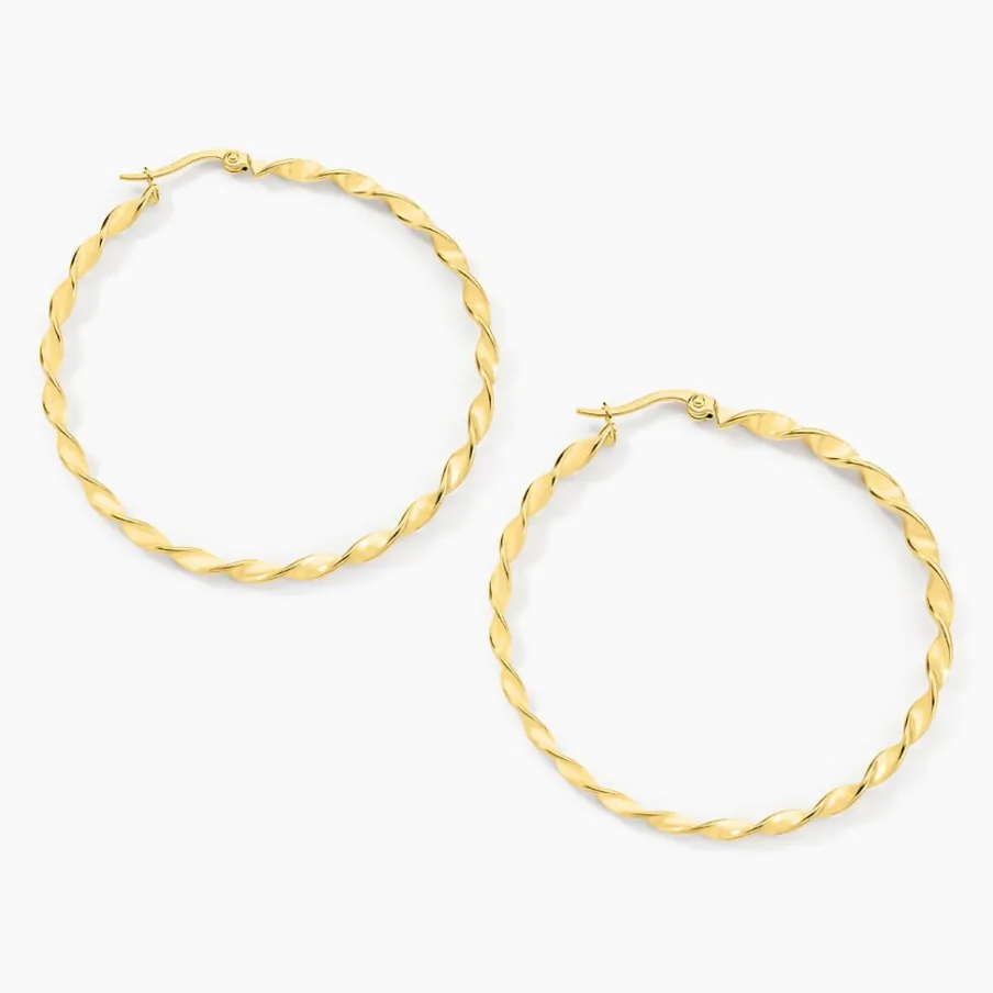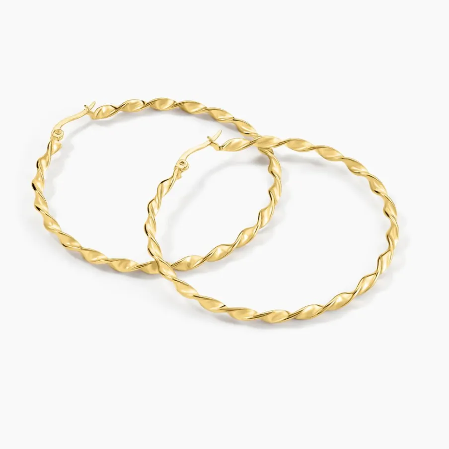 Créoles Acier Inoxydable Jaune Torsadees Largeur 3mm Diametre 50mm