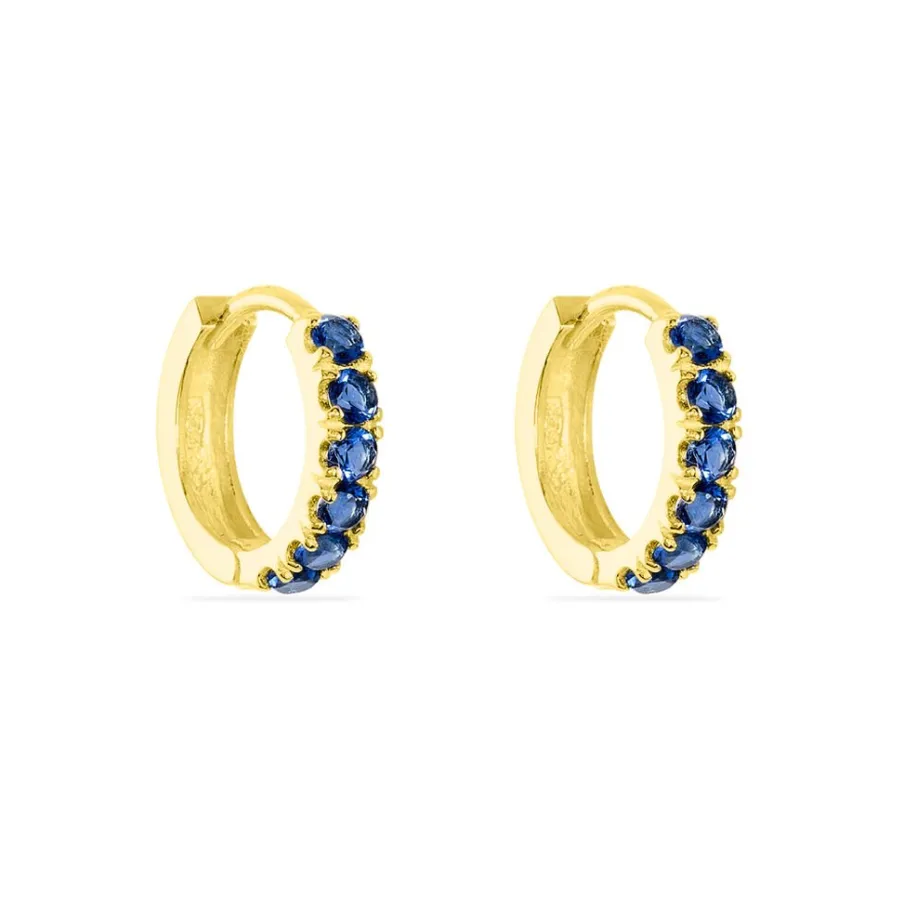 Creoles Or Jaune 375/1000 Serti 4 Griffes Oxydes De Zirconium Bleus