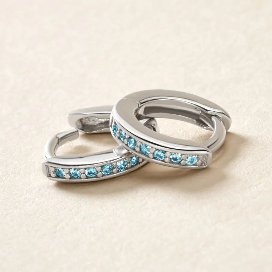 Creoles Argent Blanc 925/1000 Oxydes De Zirconium Bleus 7mm