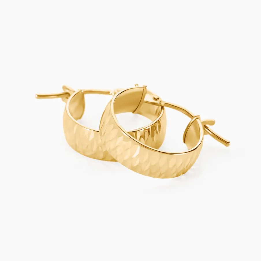 Créoles Or Jaune 375/1000 Fil Plat Effet Diamanté Largeur 4mm Diamètre 10mm