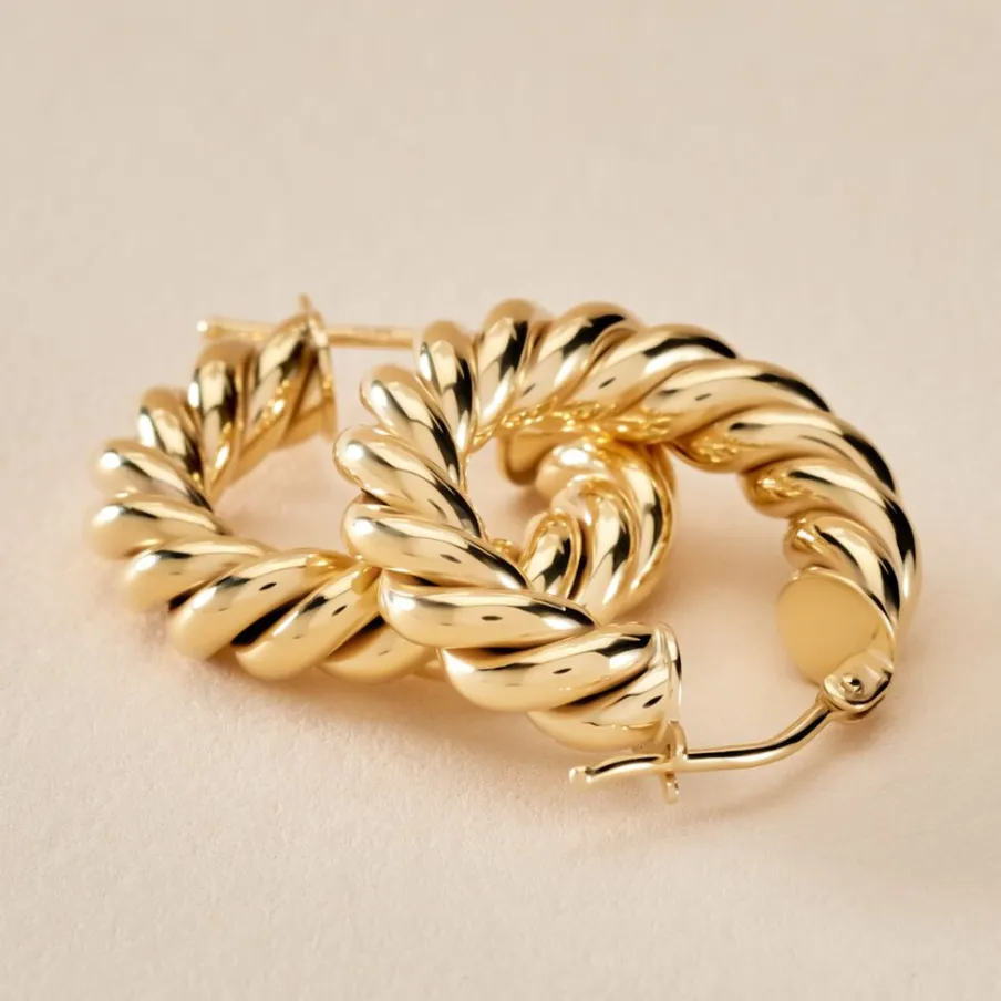 Créoles Or Jaune 375/1000 Rondes Fil Rond Torsadé Largeur 4mm Diamètre 10mm