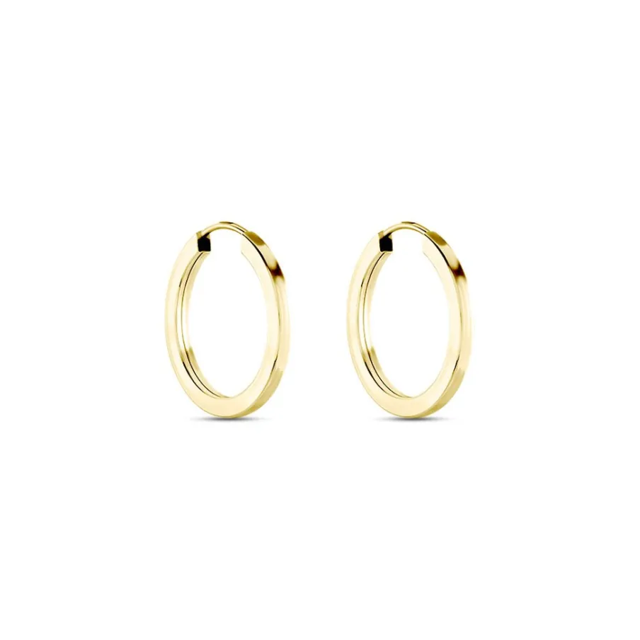 Creoles Or Jaune 375/1000 Fil Flexible Lisse Largeur 1.6mm Diamètre 15mm