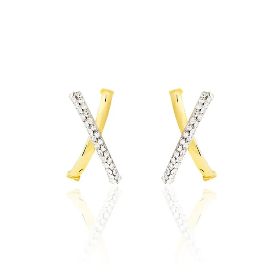Demi Creoles Or Jaune 375/1000 Croisees 1 Fil Strasse Diametre 15mm