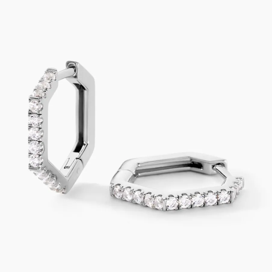 Créoles Argent Blanc 925/1000 Pavage Oxydes De Zirconium Micro Serti Diamètre 10mm