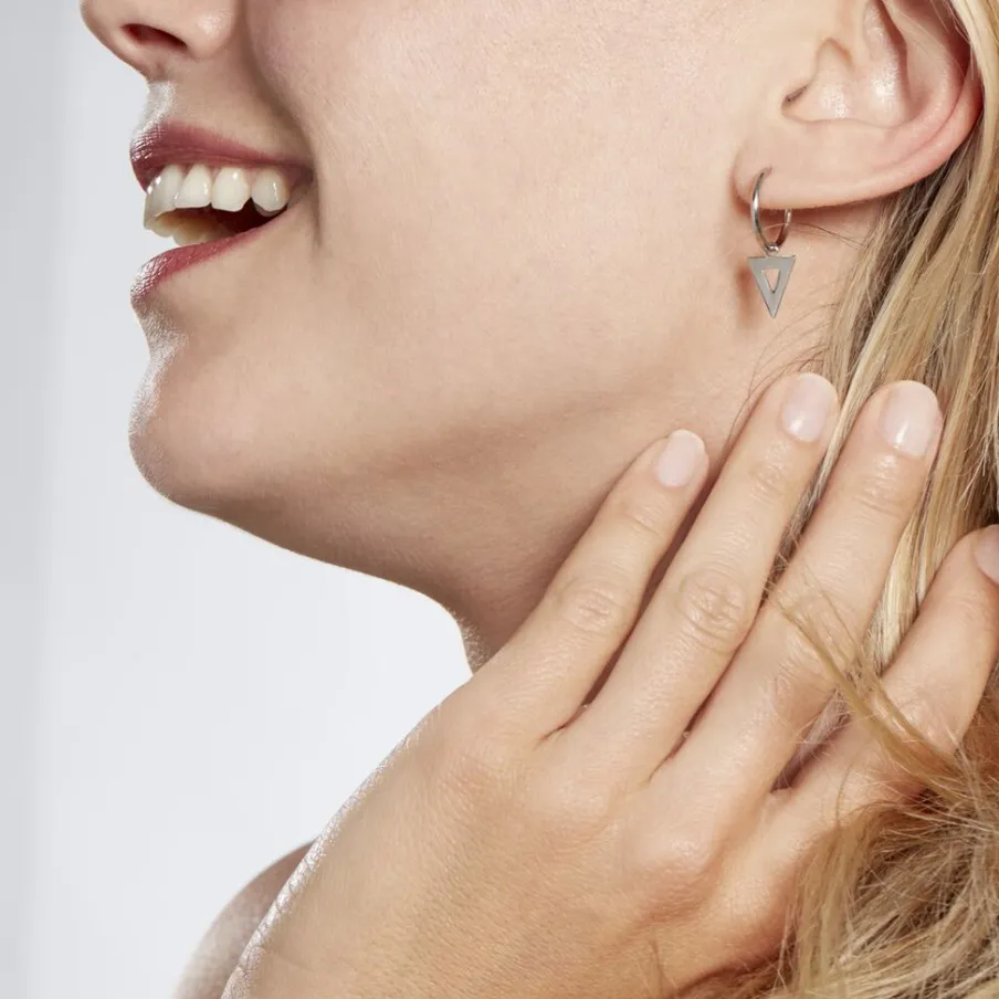 Creoles Argent Blanc 925/1000 Pampilles Triangles Ajoures Diametre 12mm