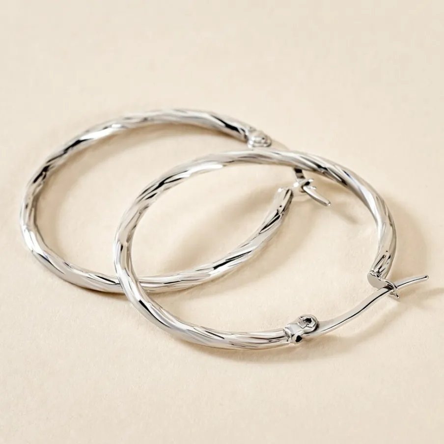 Créoles Acier Blanc Effet Strié Diamètre 30mm