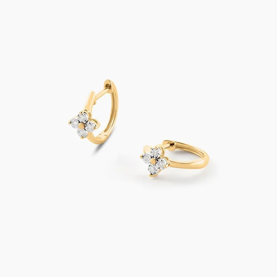 Creoles Or Jaune 375/1000 Fleurs Diamants Ronds