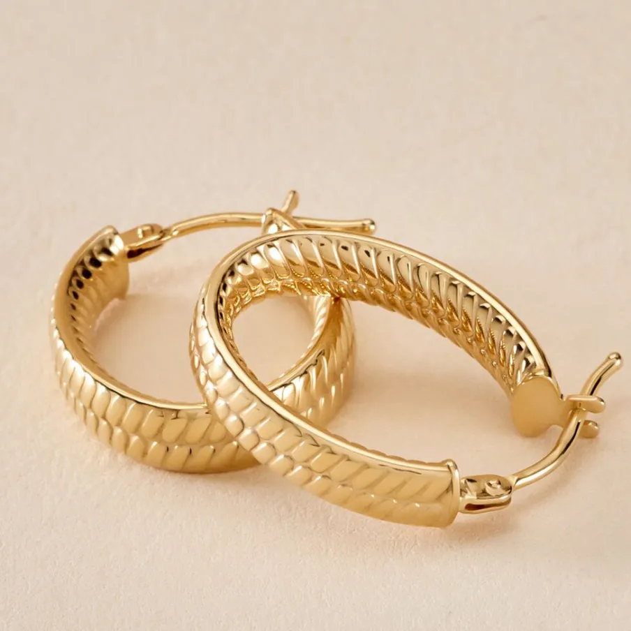 Créoles Or Jaune 375/1000 Ovales Striées Largeur 12.5*18.5mm