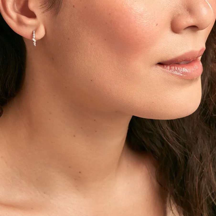 Creoles Or Jaune 375/1000 Diamants Baguette Et Brillant Serti Griffes Diametre 12cm
