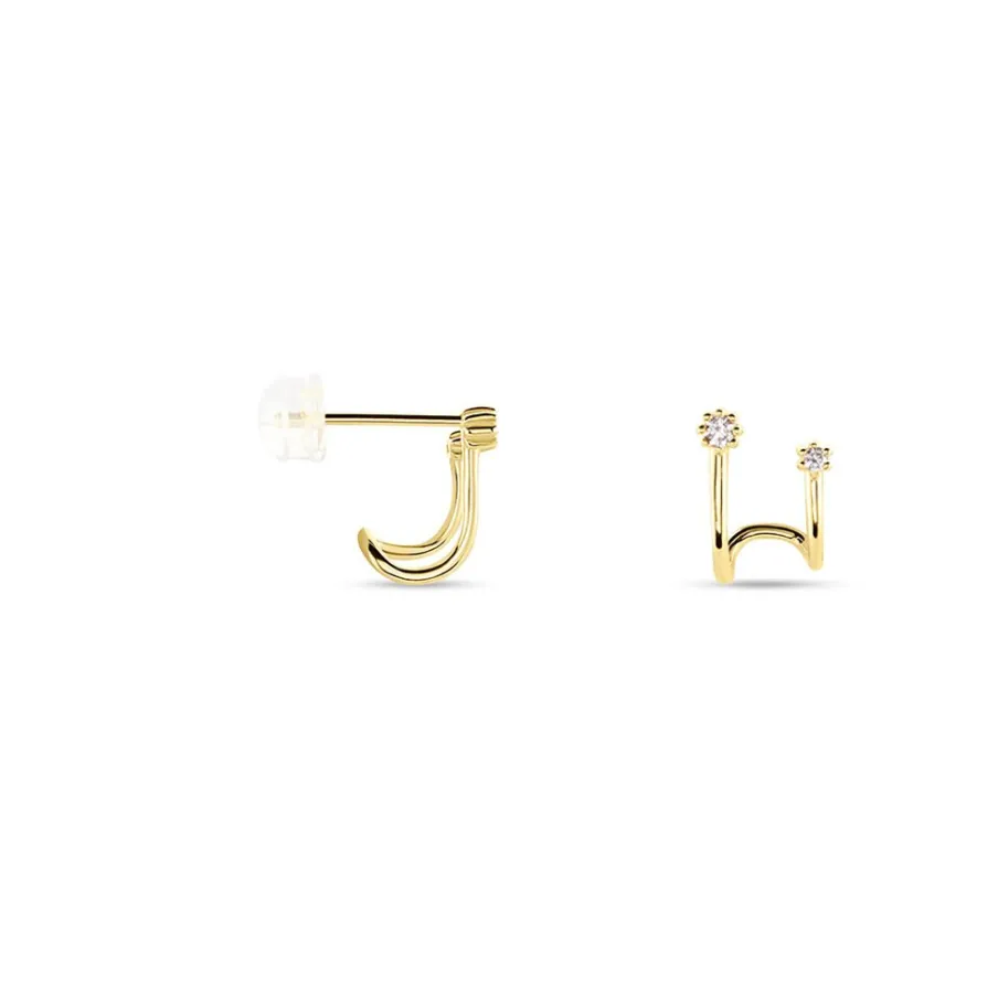 Créoles Doubles Or Jaune 375/1000 2 Oxydes De Zirconium