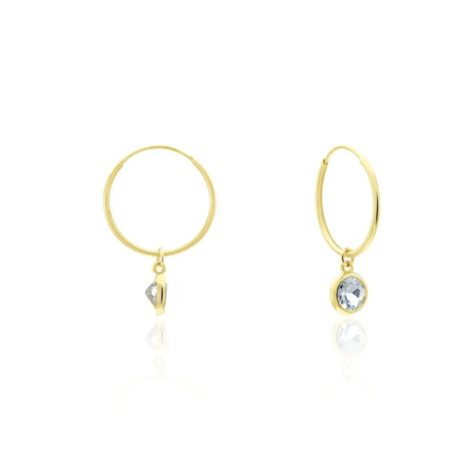 Créoles Or Jaune 375/1000 Topaze Azur Serti Clos 15mm