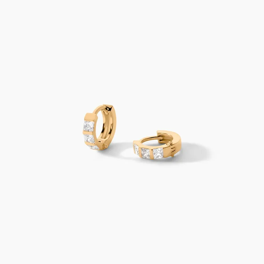 Créoles Plaqué Or Jaune Oxydes De Zirconium Carrés Sertis Barrettes Diamètre 6mm