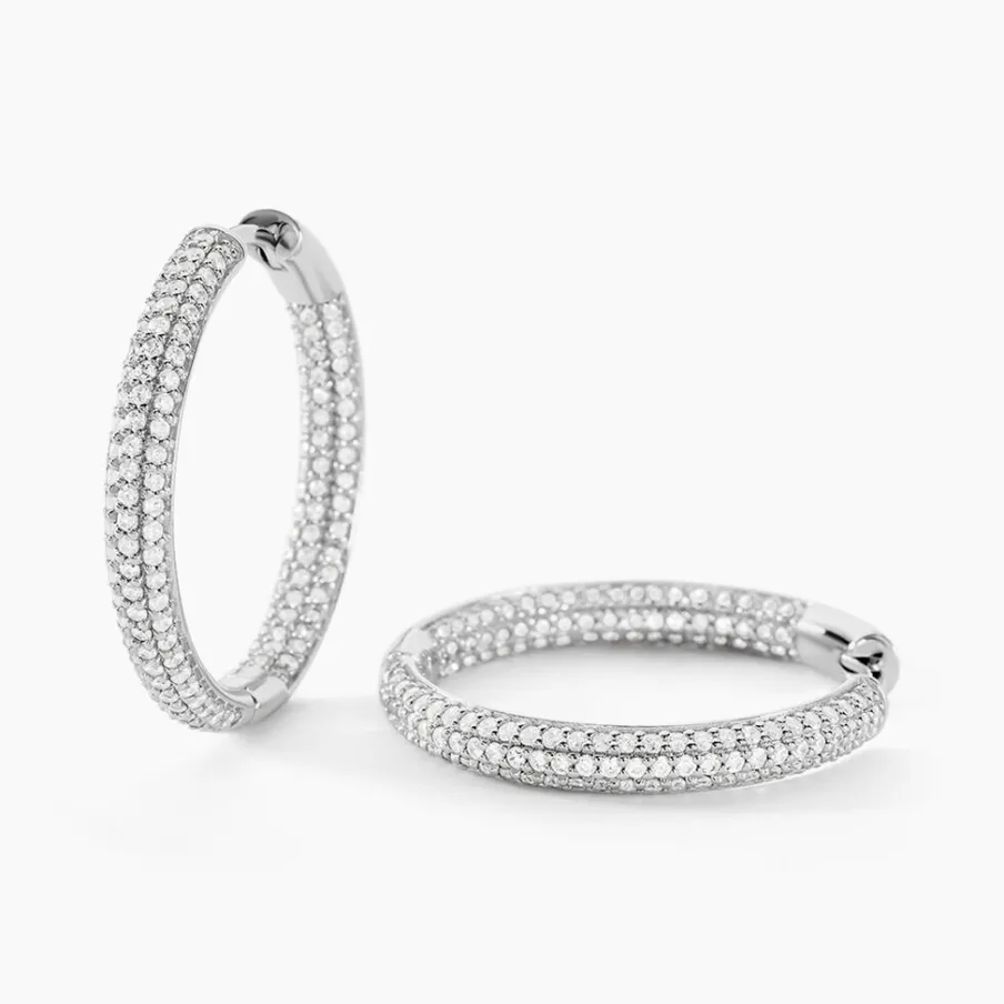 Créoles Argent Blanc 925/1000 Fil Rond Pavage Oxydes De Zirconium Diamètre 24mm