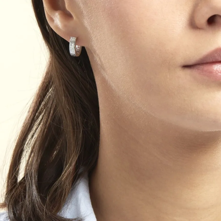 Créoles Or Blanc 375/1000 Fil Carré Grec Largeur 4mm Diamètre 10mm