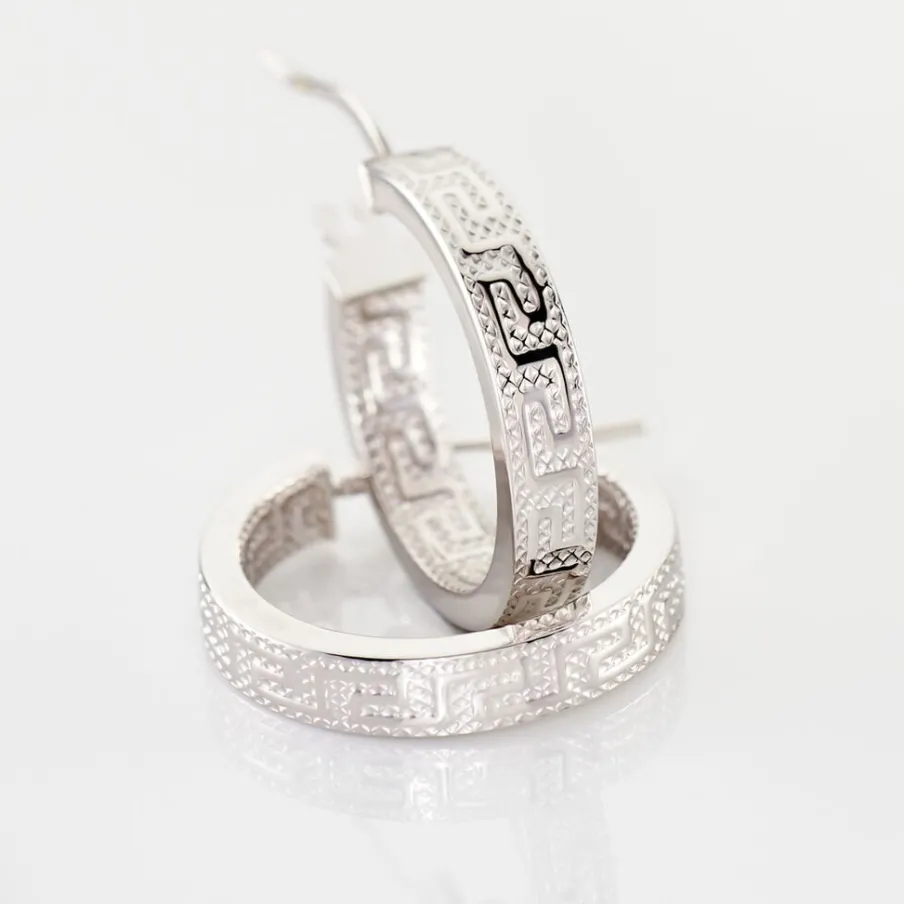 Créoles Or Blanc 375/1000 Fil Carré Grec Largeur 4mm Diamètre 15mm