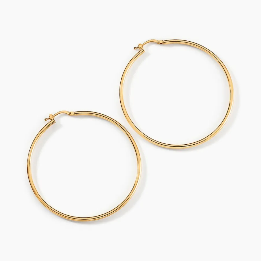 Créoles Or Jaune 375/1000 Fil Rond Lisse Largeur 2mm Diamètre 50mm