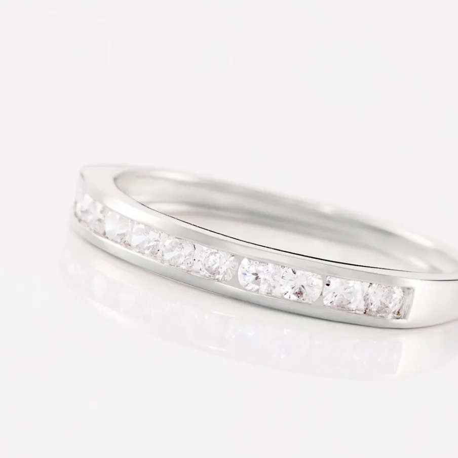 Demi Alliance Or Blanc 375/1000 Oxydes De Zirconium Ronds Serti Rail 2mm